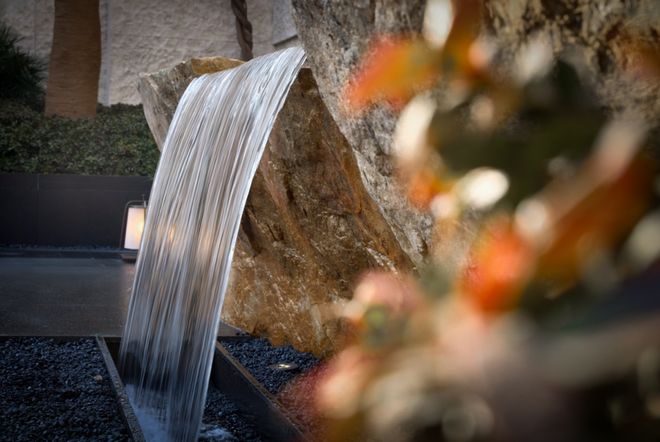 从大门往里走,便来到第二重庭院,院内山石错落有致,水瀑潺潺有声,意境清幽。