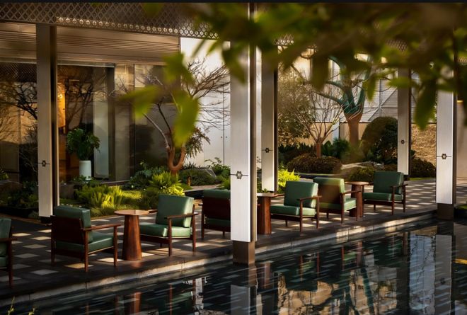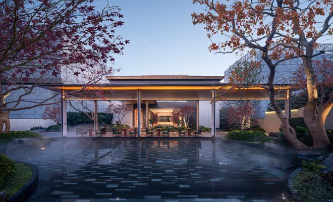 南通首创的双下沉式庭院设计,将健身中心、行政酒廊、山水会客厅室内与户外景观实现内外交融,享受天光和绿意。