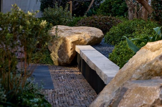但在形式的输出上,却是独具匠心,每一棵树的朝向,每一块原石的摆放,每一处细节的拿捏,都是经过了现场的反复推敲。